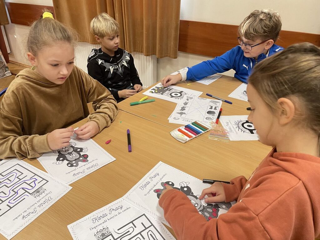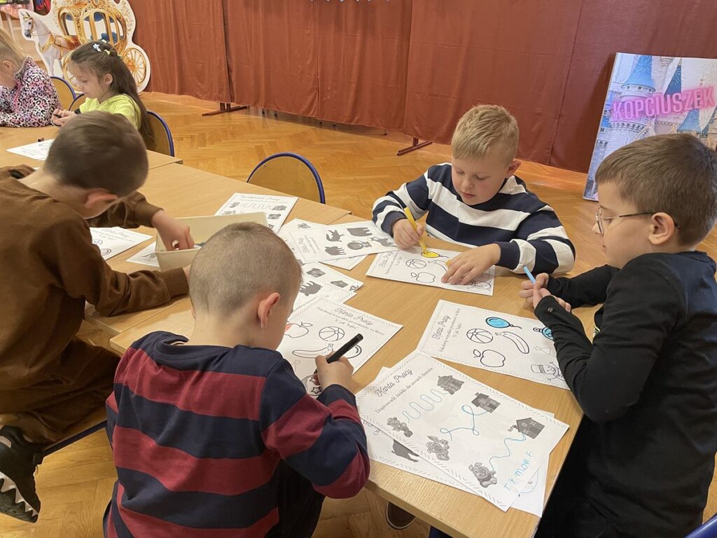 Z okazji „Dnia Postaci z Bajek” naszą bibliotekę odwiedzili uczniowie klas I – III Zespołu Placówek Oświatowych w Wąchocku wraz z wychowawczyniami: p. Izabelą Fudalą, p. Ewą Maciąg oraz p. Izabelą Śmigas. W tym dniu dominowały gry i zabawy związane z elementami bajek i baśni: układanki, przedstawiające bajkowe postacie, baśniowe karty pracy, a także zabawy ruchowe m.in. zatrute jabłko czy pociąg krasnoludków.