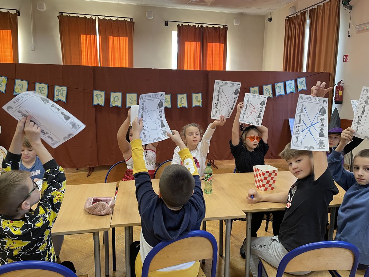 Z okazji „Dnia Postaci z Bajek” naszą bibliotekę odwiedzili uczniowie klas I – III Zespołu Placówek Oświatowych w Wąchocku wraz z wychowawczyniami: p. Izabelą Fudalą, p. Ewą Maciąg oraz p. Izabelą Śmigas. W tym dniu dominowały gry i zabawy związane z elementami bajek i baśni: układanki, przedstawiające bajkowe postacie, baśniowe karty pracy, a także zabawy ruchowe m.in. zatrute jabłko czy pociąg krasnoludków.