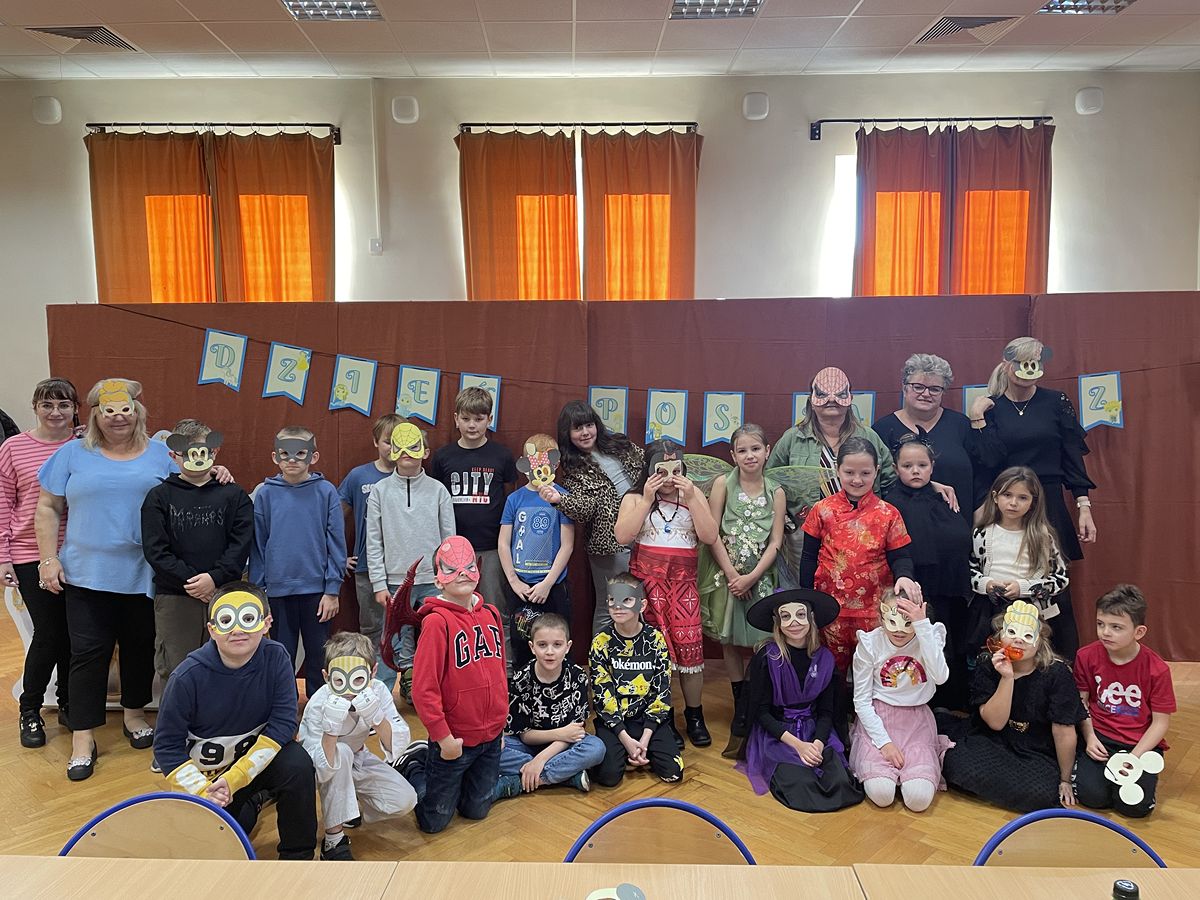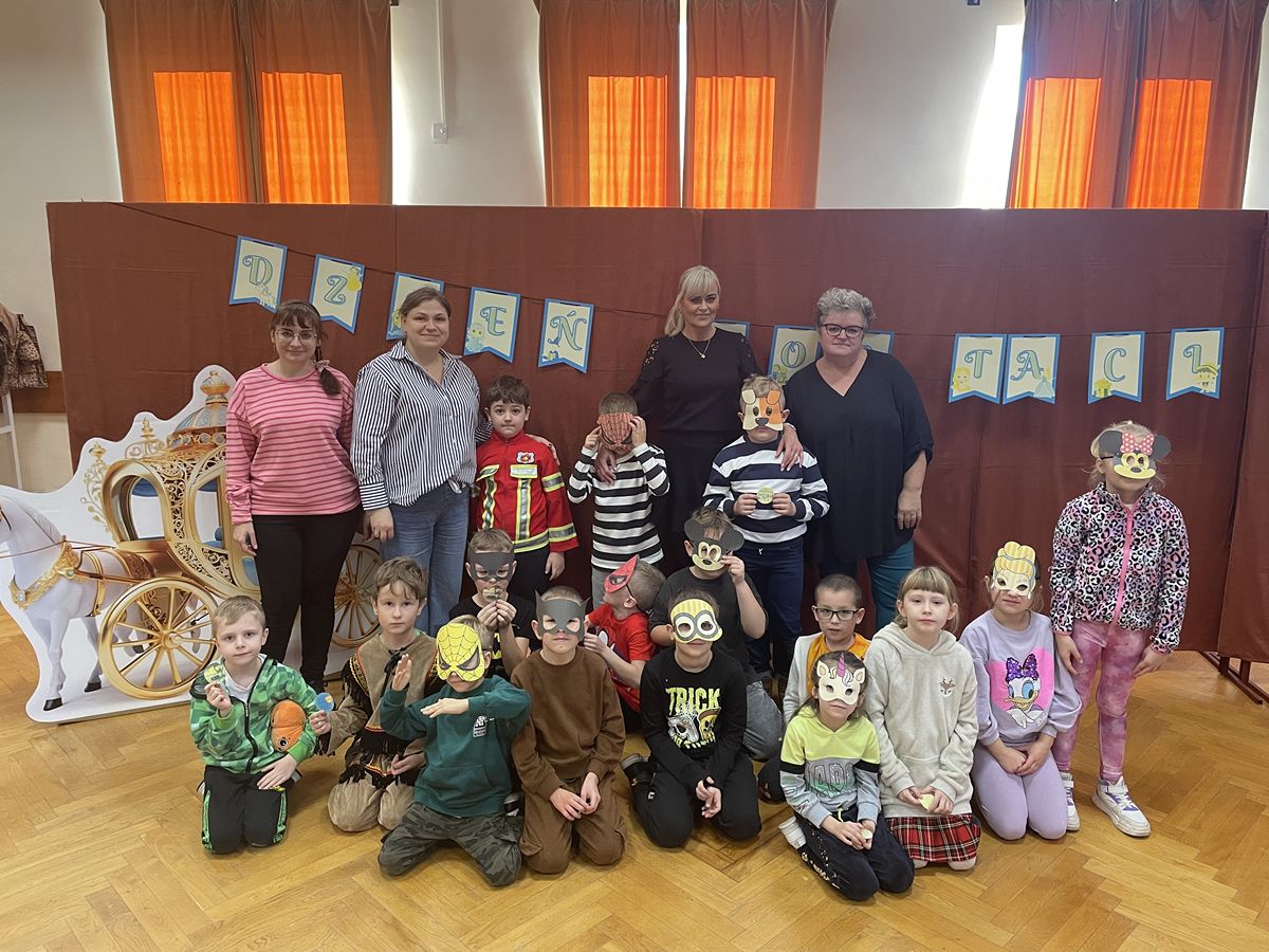 Dzieci doskonale radziły sobie z poszczególnymi zadaniami, za co zostały nagrodzone medalami „Przyjaciela Postaci z Bajek”. Na koniec wcieliły się w role bajkowych bohaterów zakładając maski. Bardzo dziękujemy za obecność i super zabawę.